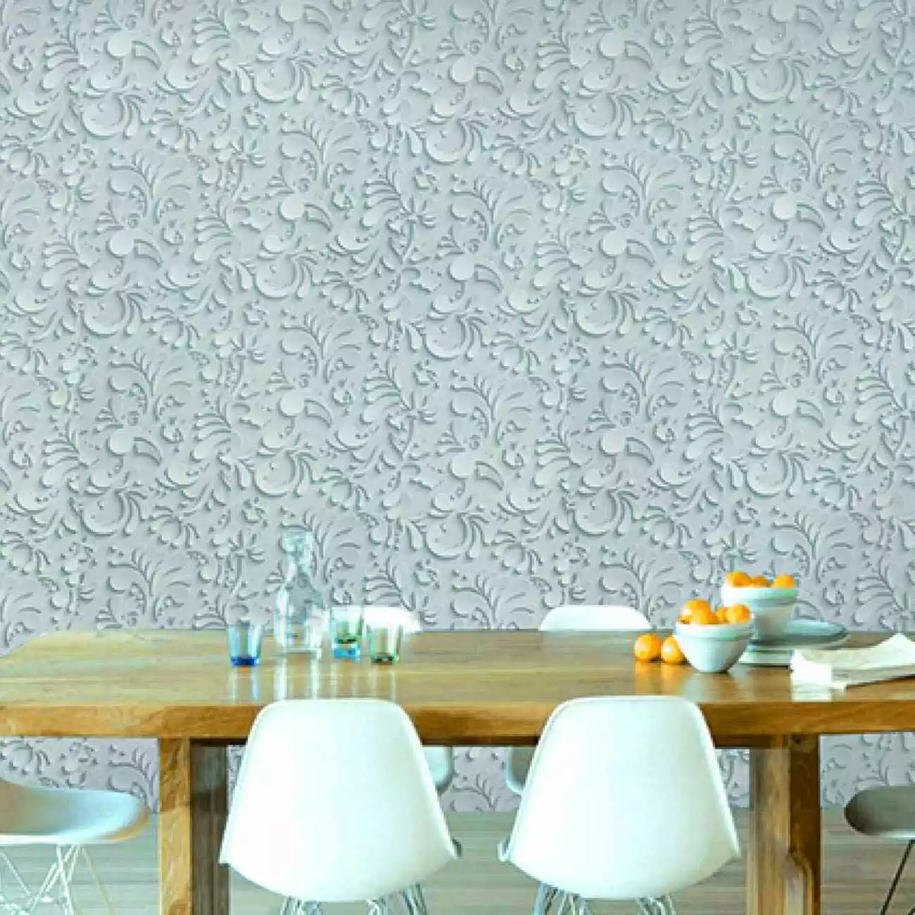 Причудливо переплетенные линии гармонично впишутся в романтический интерьер. Объемные цветы уже выглядят как главный элемент декора, что позволяет сделать их главным украшением комнаты.